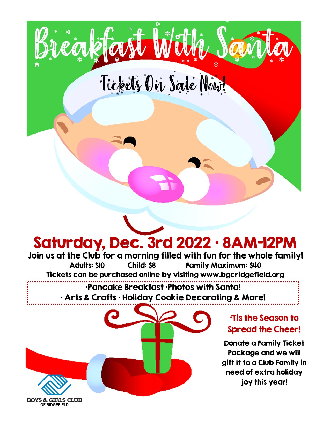 Ho Ho Ho! Did you hear the news? Santa is coming to the Club! Join us on Saturday Dec. 3rd, anytime from 8am to 12pm for a morning of fun that includes Breakfast, Arts & Crafts, Holiday Cookie Decorating and of course, Photos with Santa!